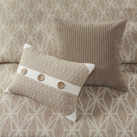 Grace 9 Piece Geometric Jacquard Comforter Set - Taupe - King Size