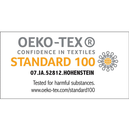 - Oeko-Tex Certified, includes no harmful substances or chemicals (# 07.JA.52812)