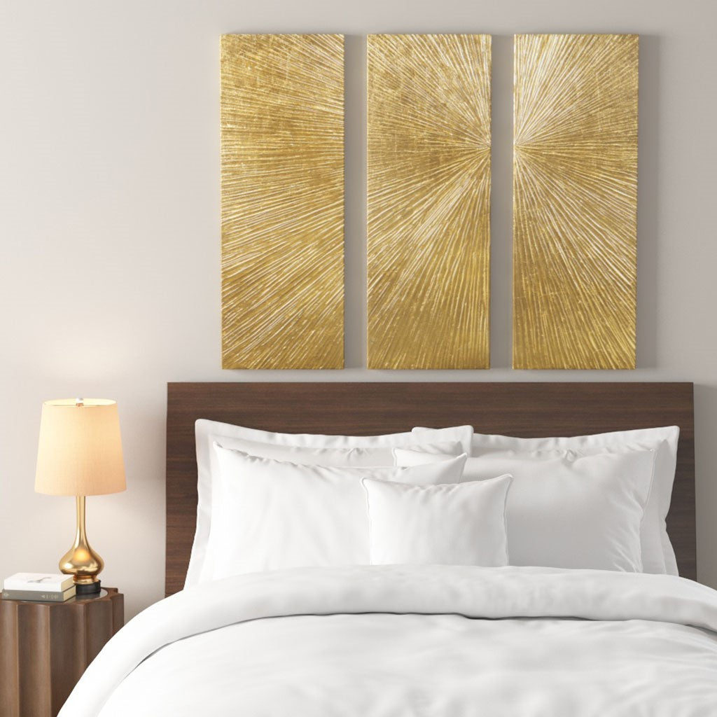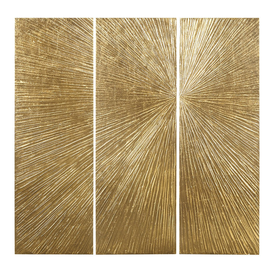 Sunburst Metallic Gold 100% Hand Painted Dimensional Resin Wall Decor 15x45" 3 Piece Set - Gold