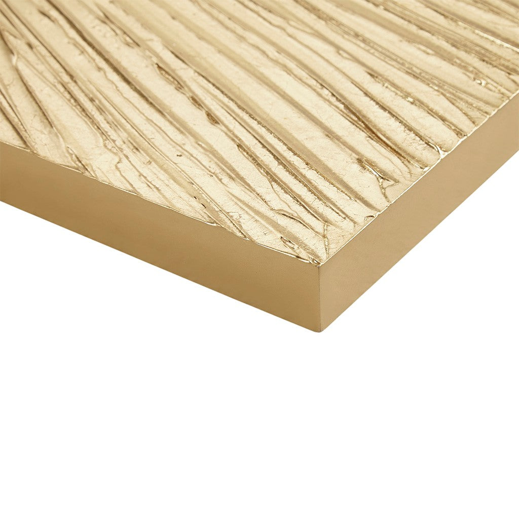The Madison Park Signature Sunburst Metallic Gold 100% Hand Painted Resin 3 Piece Wall Art Set, brings a bold and luxuriously striking update to your decor. A modern sunburst design with heavy textured detailing spreads across all 3 resin pieces to create a rich and glamorous look. The gold metallic painted finish adds a beautiful sheen and luster to elevate the design; while a 100% MDF box provides structure and support. Each piece in this set measures 15x45" and is finished with 2 D-rings on the reverse for easy hanging; simply hang pieces together with any desired spacing to create an eye-catching display on your wall. Spot clean only.