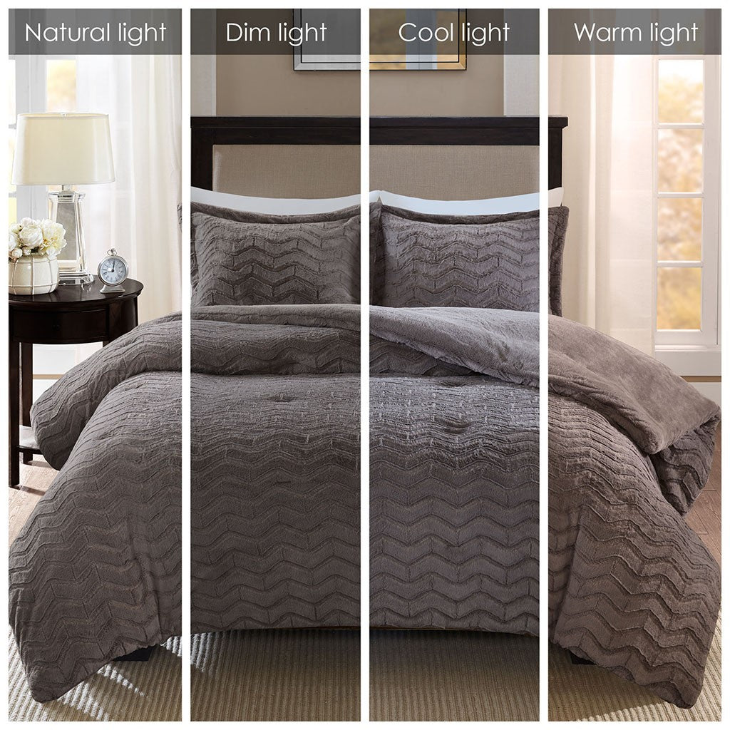 Sloan Plush Down Alternative Comforter Mini Set - Grey - Full Size / Queen Size