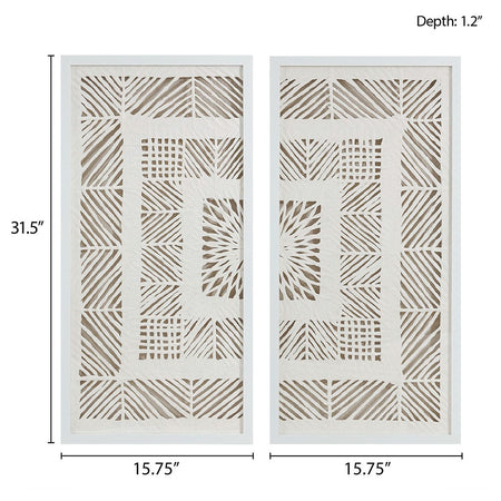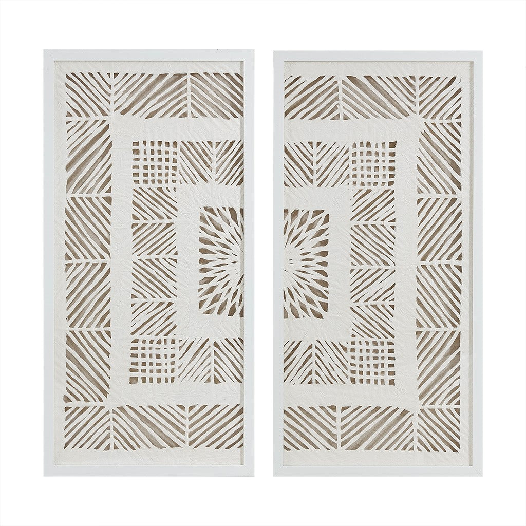 Elevate your home decor with our Madison Park Tala Framed Rice Paper Shadow Box 2 Piece Set. This shadow box set features a geometric design made from natural rice paper material, creating the perfect update of a soft global touch with a modern flair. Casted under glass and finished with a neutral frame provides a soft touch and rich dimension sure to draw anyone's eye with its organic beauty. 2 D-rings are finished on the reverse of each piece making this set easy to hang; simply hang side by side intimately along with other decor for a gallery look or add some space in between for a more focus piece to fill any wall space.