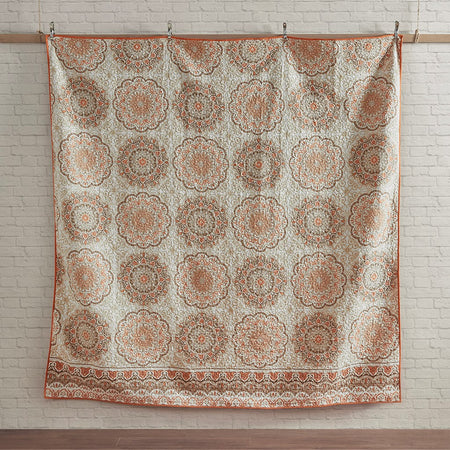 Tangiers 6 Piece Reversible Coverlet Set instantly adds color and flair to your bedroom. Its bold orange and taupe floral print with large medallions is a modern twist to a classic look. The embroidered detailing on the three decorative pillows pulls the whole look together. This coverlet set also includes two matching standard shams. With a microfiber polyester face and a brushed fabric reverse, this coverlet is soft to the touch and machine washable for easy care.