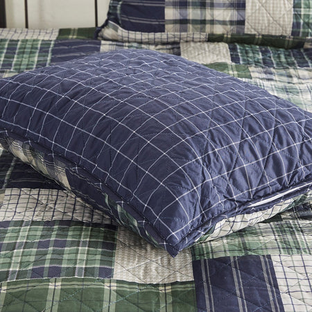 Timber 3 Piece Reversible Printed Quilt Set - Green / Navy - Full Size / Queen Size