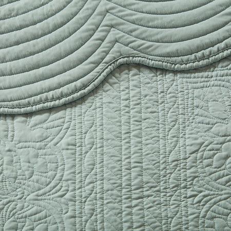 Tuscany 3 Piece Reversible Scalloped Edge Quilt Set - Seafoam - King Size / Cal King Size