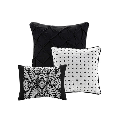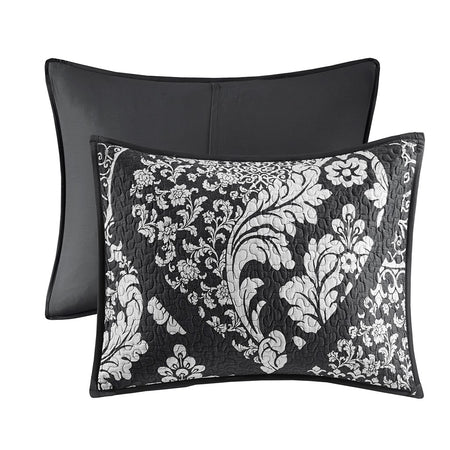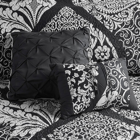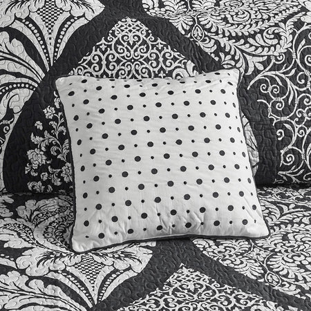 Vienna 6 Piece Printed Cotton Quilt Set with Throw Pillows - Black - Full Size / Queen Size