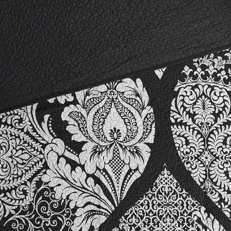 - Features Intricate damask design in black and white contrasted colors with solid black color on the reverse