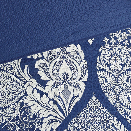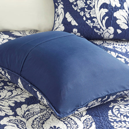 Vienna 6 Piece Printed Cotton Quilt Set with Throw Pillows - Indigo - Full Size / Queen Size