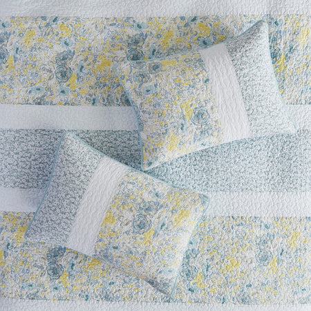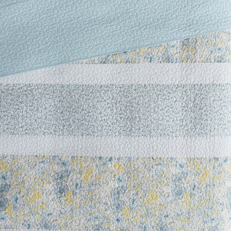 Violet 3 Piece Cotton Quilt Set - Aqua / Yellow - King Size / Cal King Size