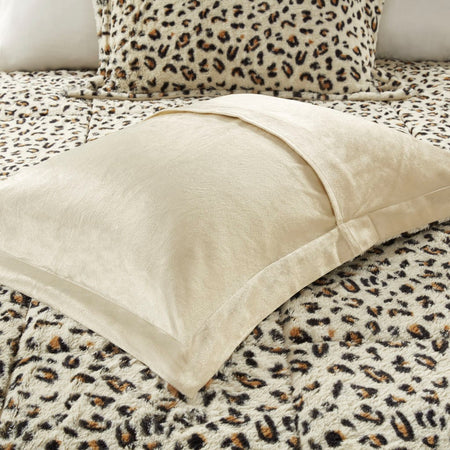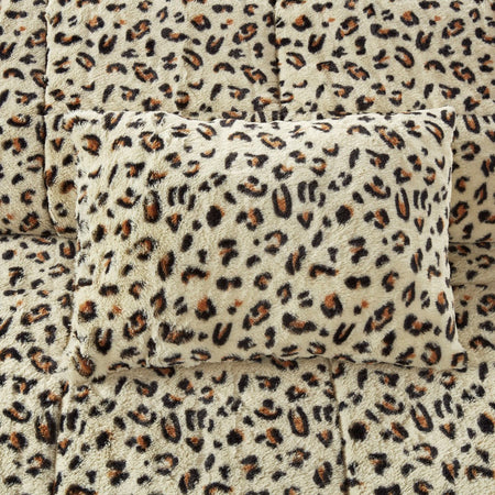 Zuri 4 Piece Faux Fur Comforter Set - Cheetah - Full Size / Queen Size