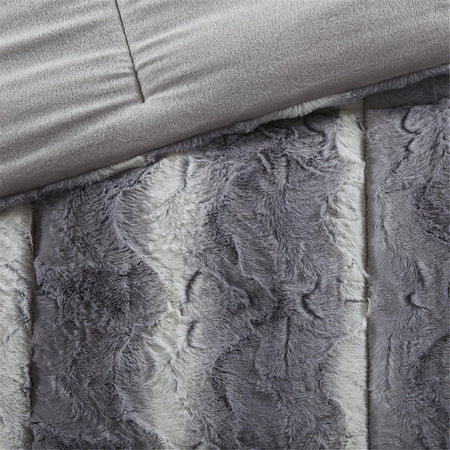 Zuri 4 Piece Faux Fur Comforter Set - Grey - Full Size / Queen Size