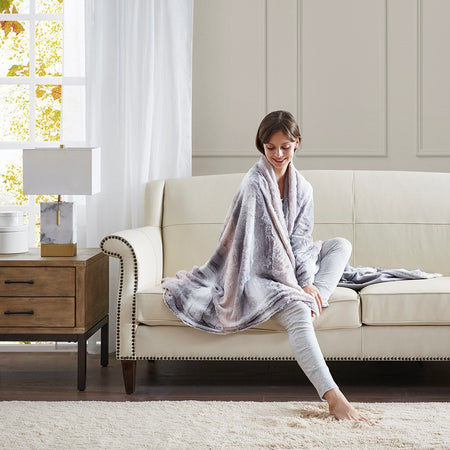 The Madison Park Zuri oversized throw features a luxuriously soft faux fur and reverses to a solid faux mink. This faux fur throw is the perfect modern update and adds a glamorous accent to your home. This throw is machine washable for easy care and OEKO-TEX certified, meaning it does not contain any harmful substances or chemicals to ensure quality comfort and wellness. Items in the set may come in a rolled or compressed packaging, which will need to be fluffed up or steam ironed before use to remove wrinkles.