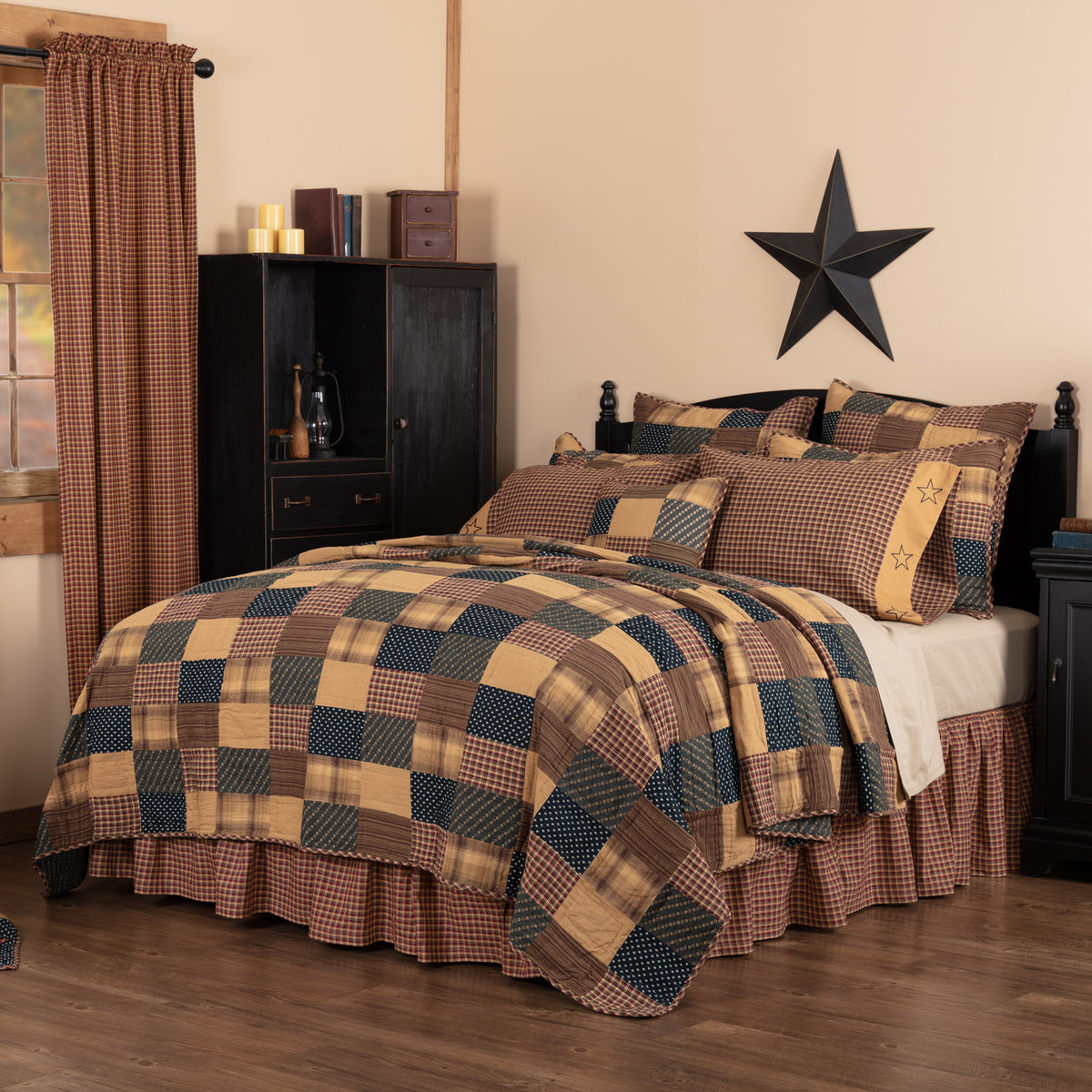 - Coordinating Accessories - Pair this primitive quilt with matching bed skirts, shams, pillows, panels, and valances from the Patriotic Patch collection.