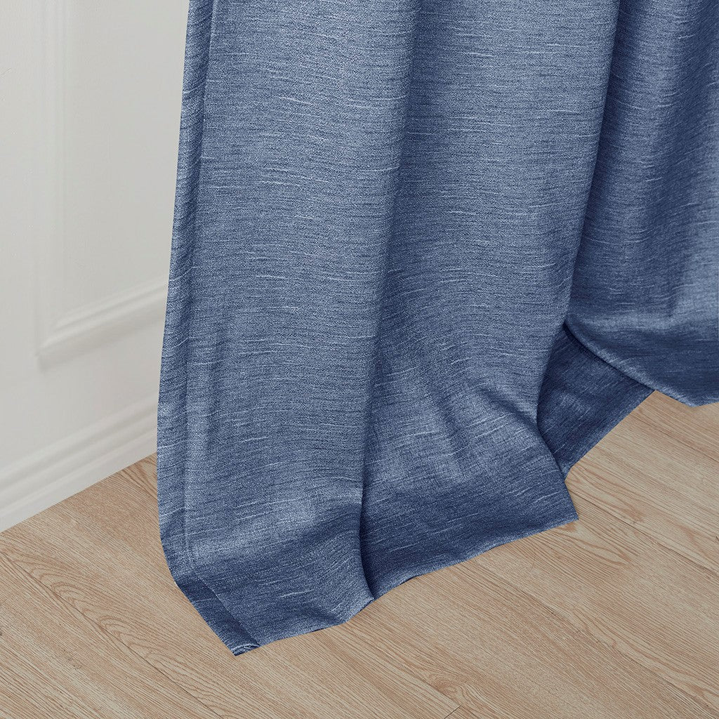 Elevate your decor with the modern style and function of our SunSmart Como Tonal Printed Faux Silk Total Blackout Panel Pair. This blackout curtain pair flaunts a tonal blue hue on a faux silk textured fabric that creates a beautiful and rich modern look. Also achieving the OEKO-TEX certification, these curtains do not contain any harmful substances or chemicals ensuring quality comfort and wellness. Each panel features a heavyweight light grey foamback on the reverse making it 100% total blackout, blocking out all outside light, noise, and intrusion for the highest level of privacy. Using thermal technology, the total blackout curtain also helps provide maximum energy savings by keeping your room the perfect temperature throughout the year. Easily hang, open, and close panels throughout the day with the silver grommet top finish; this total blackout window panel pair is perfect for use in bedrooms, media rooms, or any private space providing a pitch black ambiance lighting level when curtains are fully closed.