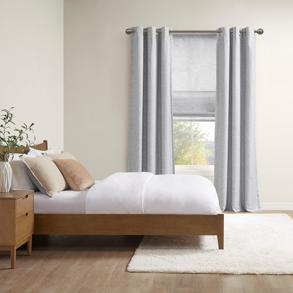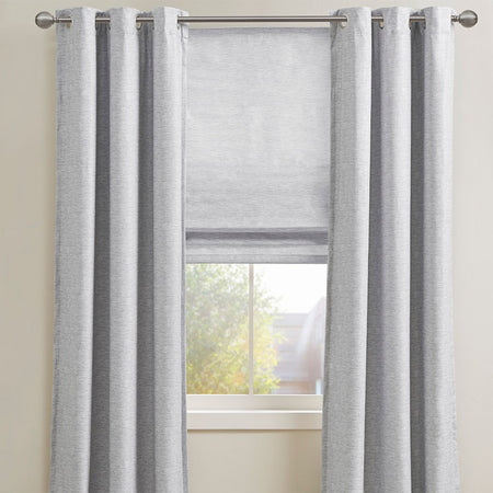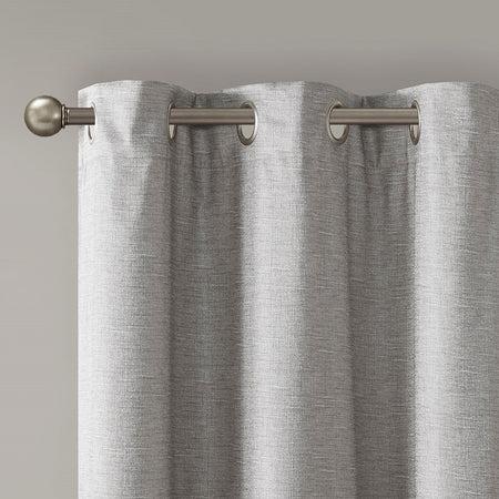 Elevate your decor with the modern style and function of our SunSmart Como Tonal Printed Faux Silk Total Blackout Panel Pair. This blackout curtain pair flaunts a tonal grey hue on a faux silk textured fabric that creates a beautiful and rich modern look. Also achieving the OEKO-TEX certification, these curtains do not contain any harmful substances or chemicals ensuring quality comfort and wellness. Each panel features a heavyweight light grey foamback on the reverse making it 100% total blackout, blocking out all outside light, noise, and intrusion for the highest level of privacy. Using thermal technology, the total blackout curtain also helps provide maximum energy savings by keeping your room the perfect temperature throughout the year. Easily hang, open, and close panels throughout the day with the silver grommet top finish; this total blackout window panel pair is perfect for use in bedrooms, media rooms, or any private space providing a pitch black ambiance lighting level when curtains are fully closed.