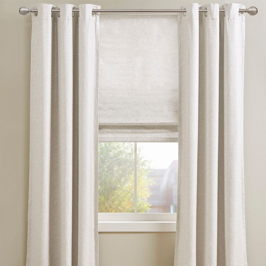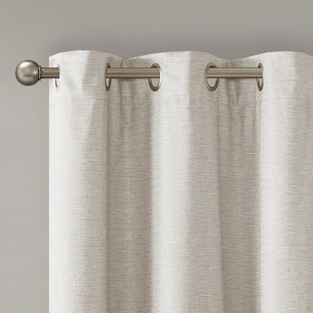 Elevate your decor with the modern style and function of our SunSmart Como Tonal Printed Faux Silk Total Blackout Panel Pair. This blackout curtain pair flaunts a tonal ivory hue on a faux silk textured fabric that creates a beautiful and rich modern look. Also achieving the OEKO-TEX certification, these curtains do not contain any harmful substances or chemicals ensuring quality comfort and wellness. Each panel features a heavyweight light grey foamback on the reverse making it 100% total blackout, blocking out all outside light, noise, and intrusion for the highest level of privacy. Using thermal technology, the total blackout curtain also helps provide maximum energy savings by keeping your room the perfect temperature throughout the year. Easily hang, open, and close panels throughout the day with the silver grommet top finish; this total blackout window panel pair is perfect for use in bedrooms, media rooms, or any private space providing a pitch black ambiance lighting level when curtains are fully closed.