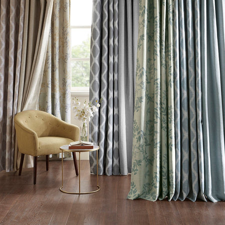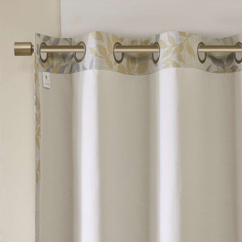 With a fun fresh take on energy efficiency, our SunSmart Julie Printed Botanical Blackout Panel is the perfect update to liven up any room. Featuring an updated botanical design printed in yellow and grey hues, this blackout window panel is made from a textured polyester slub base fabric creating texture and dimension for a casual look. A one pass foamback finish with additional bonding on the reverse enhances the panel to buffer most sunlight, while also creating a significant barrier to reduce outside noise. Silver grommet top finish makes this panel easy to hang, open, and close throughout the day; while fitting up to a standard 1.25"Â diameter rod. Perfect for home offices, family rooms, and bedrooms, this blackout panel provides a high-level of privacy and considerable energy savings in a trend-setting style. Lighting level: Heavily Shaded Ambiance.