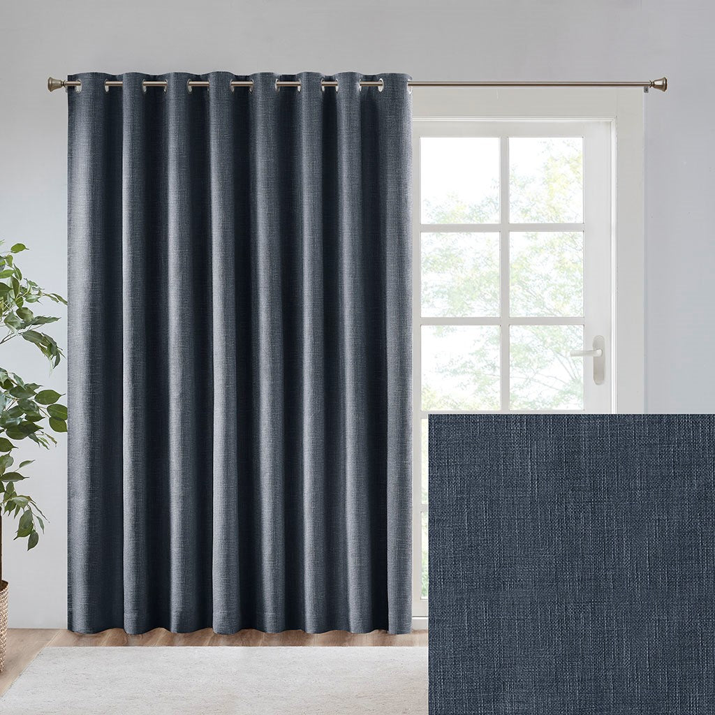 Maya Printed Heathered Total Blackout Window Patio Panel - Navy - 100x84"