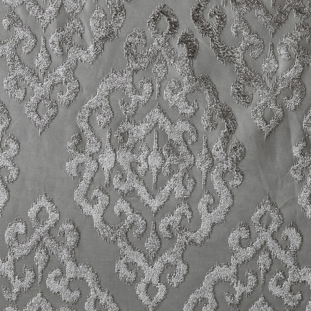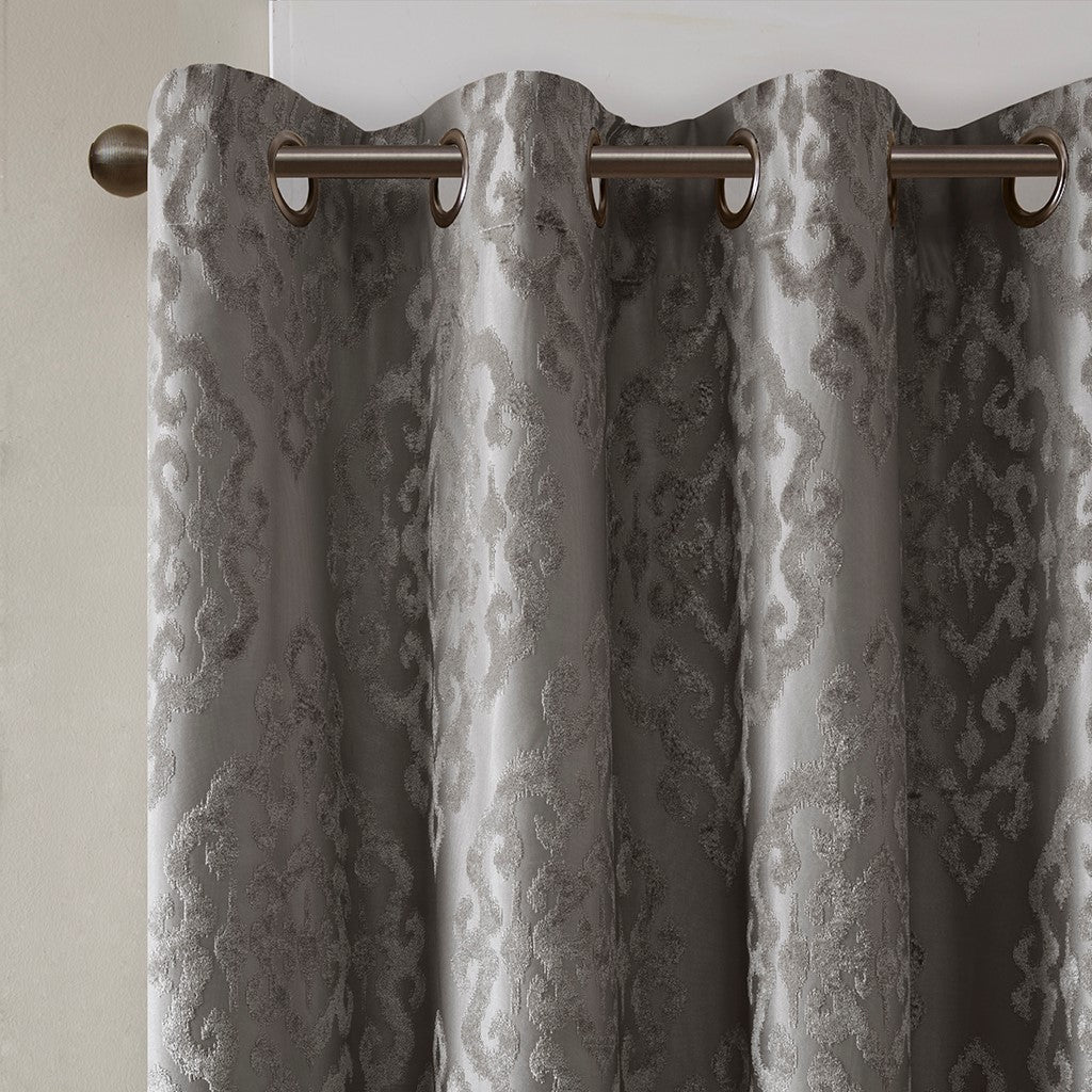 Mirage Knitted Jacquard Damask Total Blackout Grommet Top Curtain Panel - Charcoal - 95" Panel