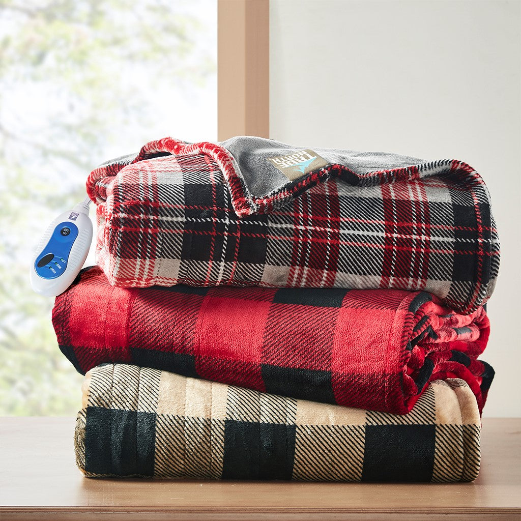 Jacob Oversized Heated Plush Throw - Buffalo Check Red - 60x70"